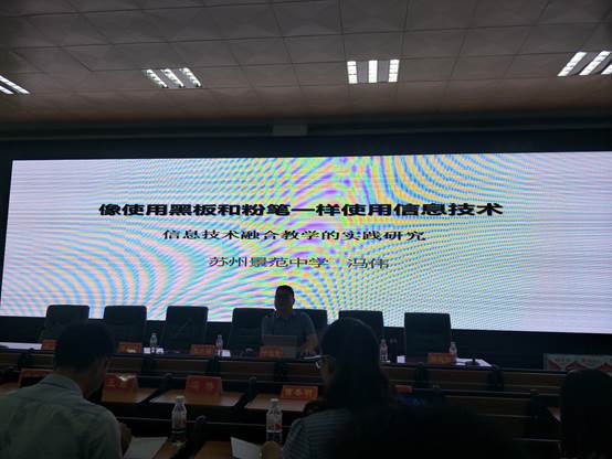 今年暑假,我校数学组冯伟老师作为苏州教育局聘任专家,赴贵州省铜仁市为当地一百一十位初中数学教师开设了题为《像使用黑板和粉笔一样使用信息技术》专题讲座,冯老师连续讲授了三天,以教授初中数学教师专用的软件《几何画板》为抓手,明确了信息技术是要“用”而不是用来“放”的思想,树立了要像使用黑板和粉笔一样使用信息技术的目标,提升了当地数学教师的信息技术专业素养。