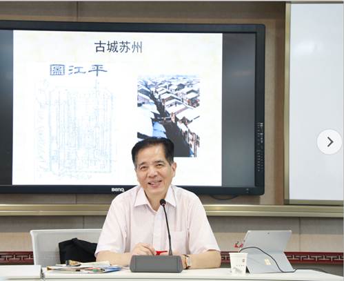 下午景范校友、苏州政协原文史委主任、历任苏州市委宣传部文明办副主任、苏州电台台长、苏州市地方志办公室主任、现为中国作家协会会员的叶正亭先生作了《吴地文化,苏州精神》的讲座。叶先生讲解了吴文化的内涵与价值,介绍了苏州众多地名的由来和历史掌故,极为生动有趣。通过叶先生如数家珍的苏州历史介绍,时不时穿插的苏州方言和趣味提问,让座下听者对苏州历史产生了浓厚的兴趣,也自豪于苏州深厚的历史底蕴和当下对国家的贡献,特别是谈到范公精神,引发全体教师的深深共鸣。