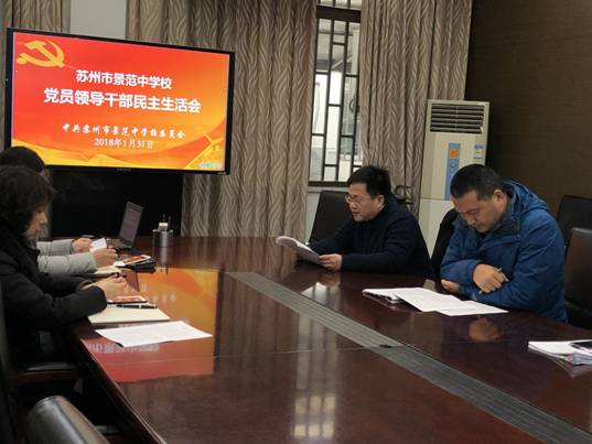 为认真贯彻落实《关于开好2017年度县以上党和国家机关党员领导干部民主生活会的通知》(苏组通【2018】1号)及苏教组【2018】1号等文件精神和要求,2018年1月31日下午,学校召开领导班子民主生活会,会议由党委副书记华晔同志主持,学校党委成员及班子成员集体参加。