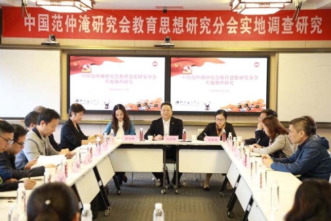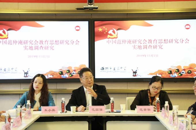 11月7日下午,中国范仲淹研究会范国强会长一行前往苏州市景范中学开展“不忘初心,牢记使命”主题教育调研,景范中学原来是中国范仲淹教育思想研究与实践基地,2018年3月成为中国范仲淹研究会教育思想研究分会的秘书处和研究与实践基地。