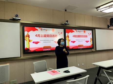 第一项议程是全体党员学习苏州教育局印发的《关于加强和改进新时代中小学师德师风建设的实施意见》。党员们表示会以身作则,深入领会文件精神,严格按照文件要求,将社会主义核心价值观贯彻到师风师德建设全过程,并带动身边群众一起站好讲台、勤勉工作,呈现敬业奉献、崇德尚美的教师新风尚。大家视频学习了《决胜,为人民而战》和《最美的天使之江苏援鄂医疗队》,党员们了解抗“疫”一线优秀党员事迹,在感动之余更是树立了在疫情这一特殊时期,守初心、担使命,做好科学防控和提高教学质量的决心。