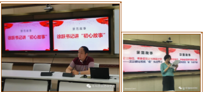 2020年书记项目《景仰先贤诵经典,薪火相承传初心》。理科支部邀请了原学校党委书记徐跃同志参加退休前最后一次主题党日活动,请徐书记给党员们讲讲自己的“初心故事”,并和大家一起聆听“景范声音”。徐跃书记分享了自己的初心故事,他觉得自己最幸福的时光就是做班主任的时候,幸福的源泉来自于他的学生。从他分享的故事中我们解读到:他的初心就是关爱每一个学生,不放弃每一个学生。文科支部本期的“景范故事”是沈宗健同志抗“疫”先进事迹,他坚守岗位,率身垂范,守好“责任田”、护好“一校人”。从他们身上,我们看到了一个优秀共产党员的风采,他们用行动诠释了教师“热爱祖国、无私奉献、艰苦奋斗、勇于攀登”的精神,这是我们学习的榜样。