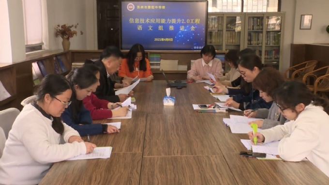 2021年4月8日下午,语文组全体成员相聚一堂, 就江苏省信息技术应用能力提升工程2.0召开了一次推进会。