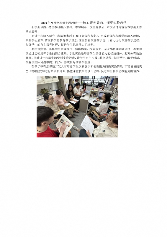 2023年9月物理组主题教研——核心素养导向,深度实验教学