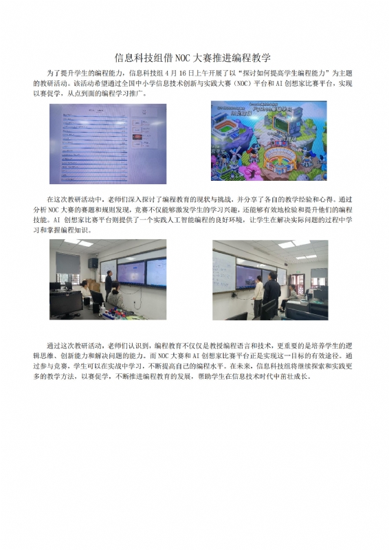 信息科技组借NOC大赛推进编程教学