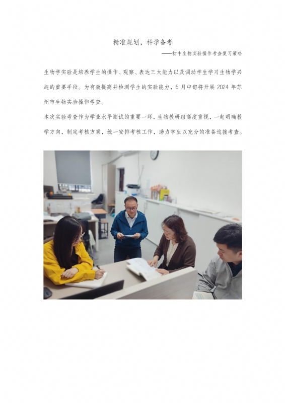 精准规划,科学备考 ——初中生物实验操作考查复习策略