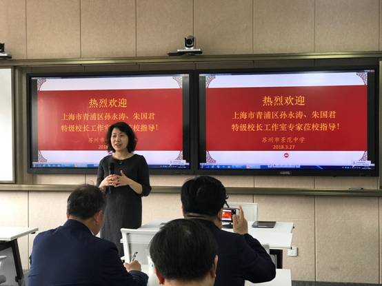 3月27日,上海市青浦区孙永涛、朱国君特级校长工作室的33名校长来到景范交流,了解学校课程建设的情况,徐达娴副校长作了专题报告。